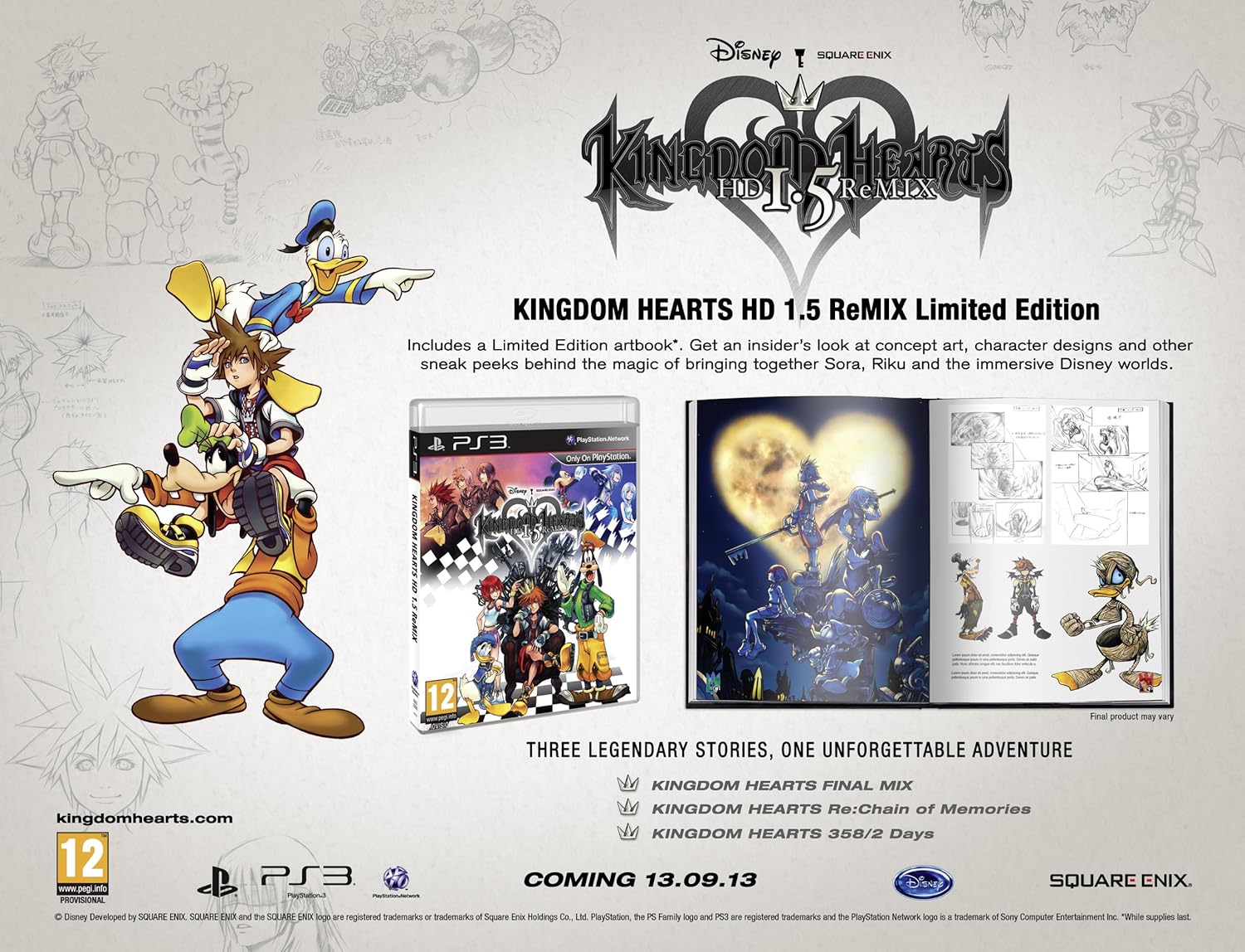 Με το Kingdom Hearts HD 1.5: Limited Edition μπορείτε να απολαύσετε τους τρεις πρώτους τίτλους της σειράς Kingdom Hearts (Final Mix, Re:Chain of Memories και 358/2 Days) στο PS3 για πρώτη φορά, με βελτιωμένα γραφικά υψηλής ανάλυσης, νέους τελικούς κακούς, καλύτερο χειρισμό και πλήρη υποστήριξη τροπαίων.